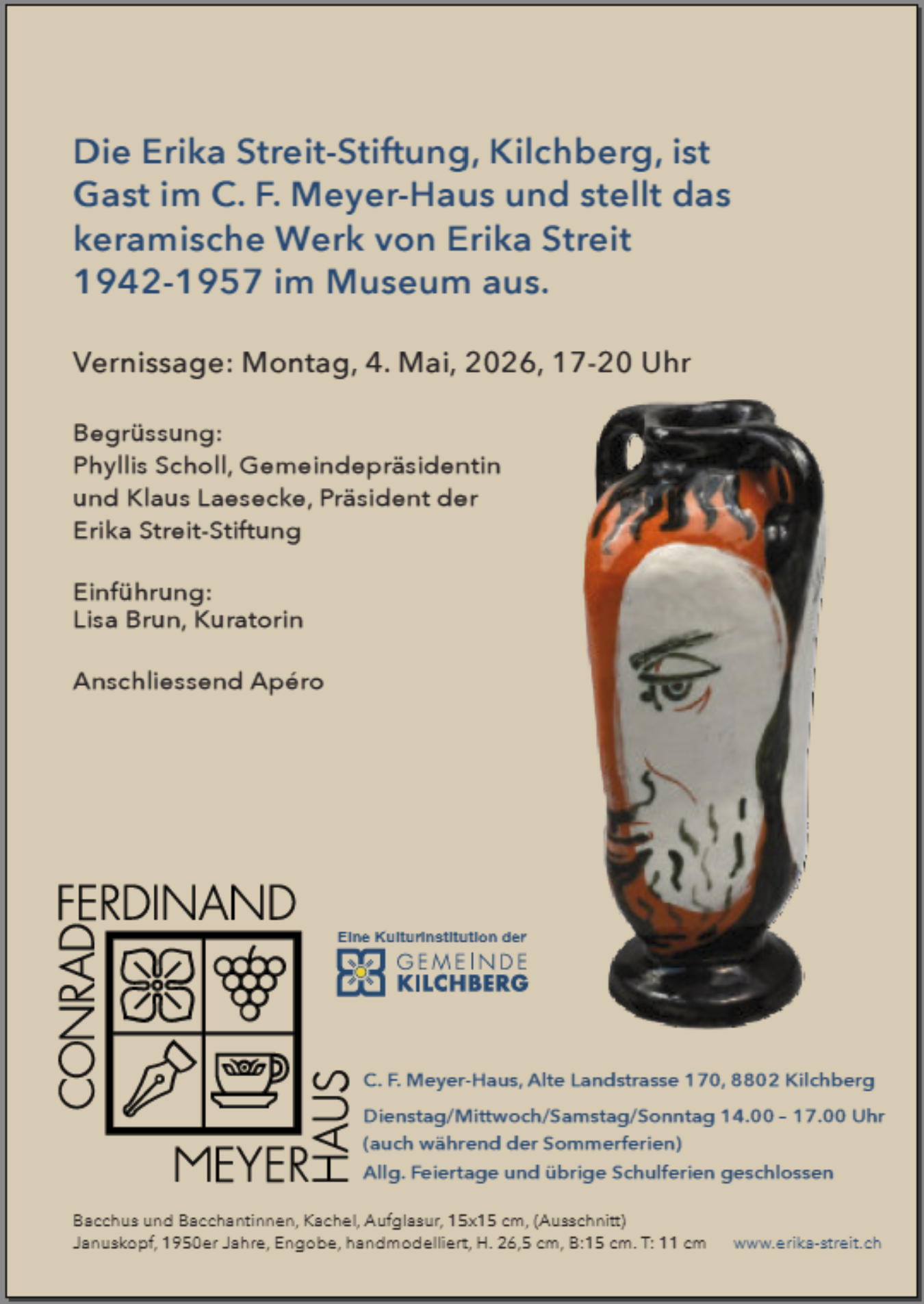 2001 gegründet, hat sich die Stiftung Erika Streit die Bekanntmachung und Verbreitung des Werkes der Malerin zur Aufgabe gemacht. Nachdem die Inventarisierung ihrer Bilder und Keramiken, an die 13‘000 Objekte, mit Unterbrüchen fast ein Jahrzehnt in Anspruch genommen hat, tritt die Stiftung nun mit einer Webseite an die Öffentlichkeit, um einem breiteren Publikum Einsicht in das Werk Erika Streits und in die Tätigkeit der Stiftung zu geben: